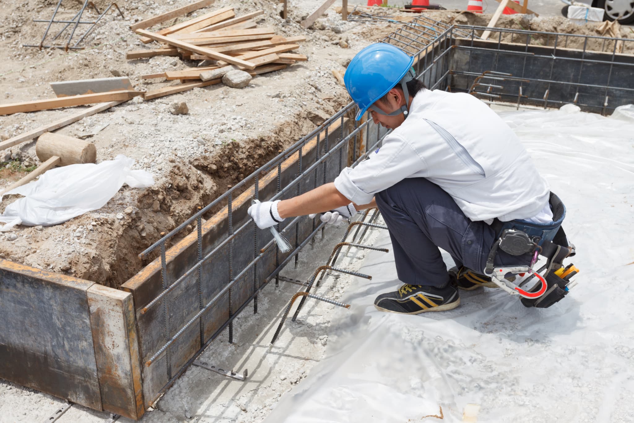 建築物の基礎を形作る型枠工事